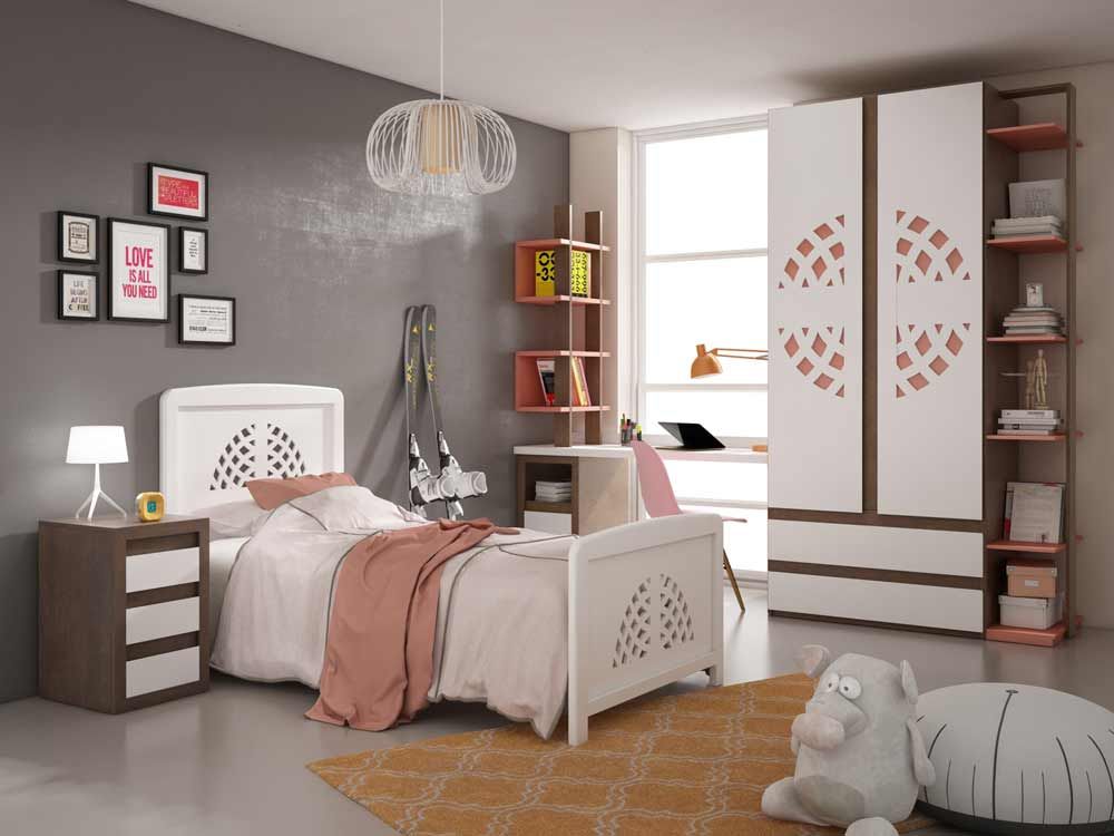 Dormitorio lumobel pino, lacado blanco y nogal.